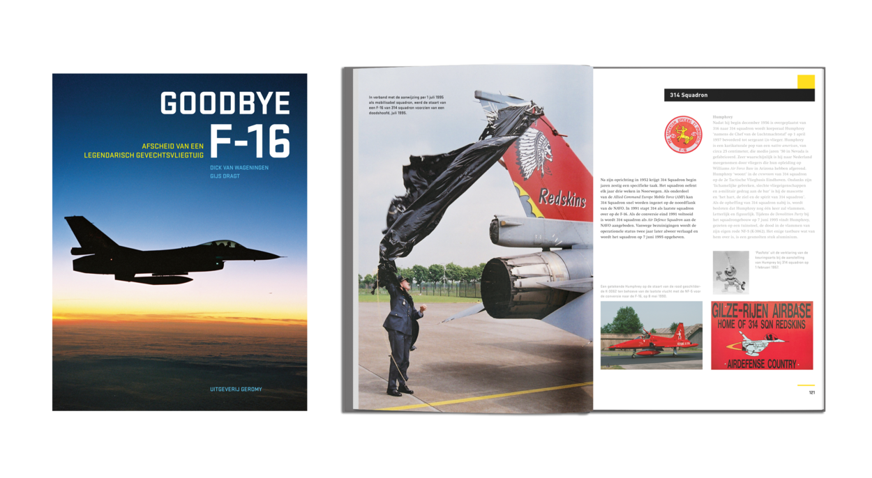Goodbye F-16 – Afscheid van een legendarisch gevechtsvliegtuig’ met ISBN 9789083312224 is samengesteld door Dick van Wageningen en Alfred Staarman en uitgegeven door Uitgeverij Geromy b.v. in Nieuwegein. De hardback op formaat 22 x 29 cm telt 184 pagina’s, is voorzien van Nederlandse tekst en bevat bijna ruim 180 kleuren- en enkele tientallen zwart-witfoto’s en documenten. Het boek kost € 35,00 en het is onder meer te koop in het NMM en bij de uitgever. Kijk daarvoor op www.luchtvaartboeken.com.