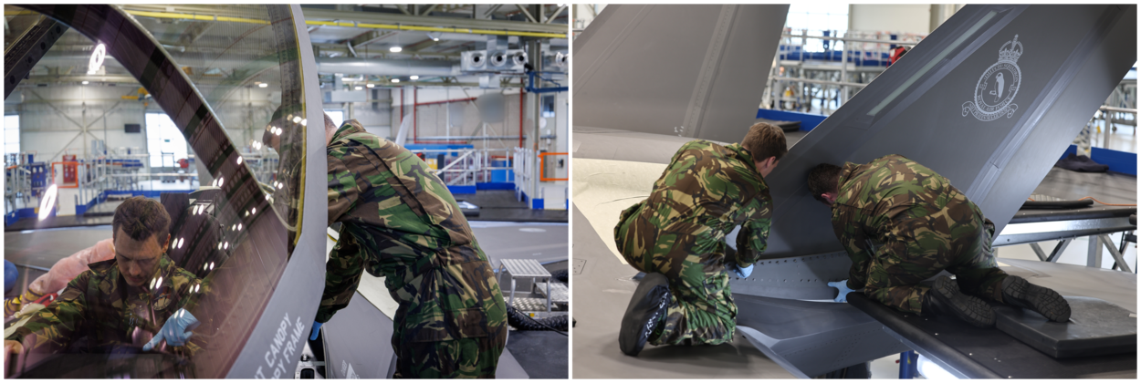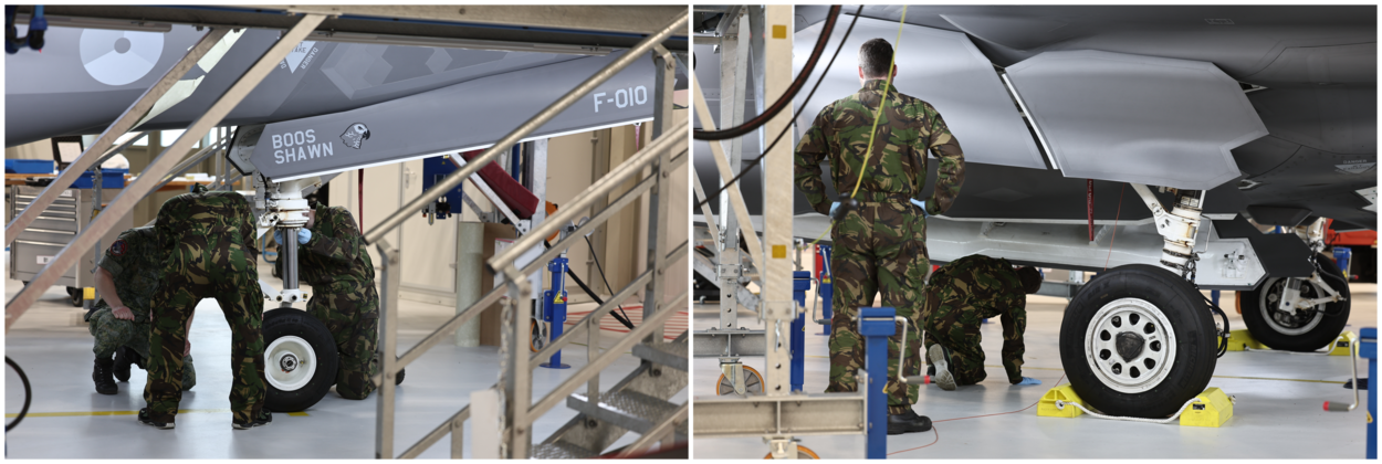 Gaat alles dan helemaal volgens planning? “Nou bijna,” geeft Schutten aan, “maar met zo’n project loop je altijd tegen wat dingen aan. Kleine zaken hoor, zoals gereedschap dat er nog niet is, waardoor je bepaalde zaken niet kunt uitvoeren. Dat hoort allemaal bij een eerste toestel dat binnenkomt. Niets ernstigs. Je moet dit project ook echt zien als kruipen-lopen-rennen, net zoals de introductie van het wapensysteem bij de operationele squadrons.” Daarbij is ook het personeel een zeer kritisch onderdeel. Schutten: “Op het gebied van structures hebben we echt meer handjes nodig. Als iemand zich geroepen voelt, is hij of zij van harte welkom!”