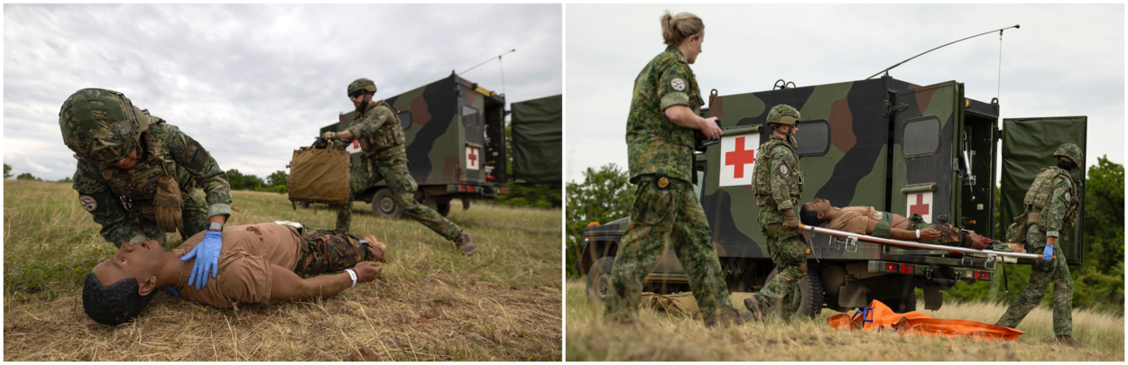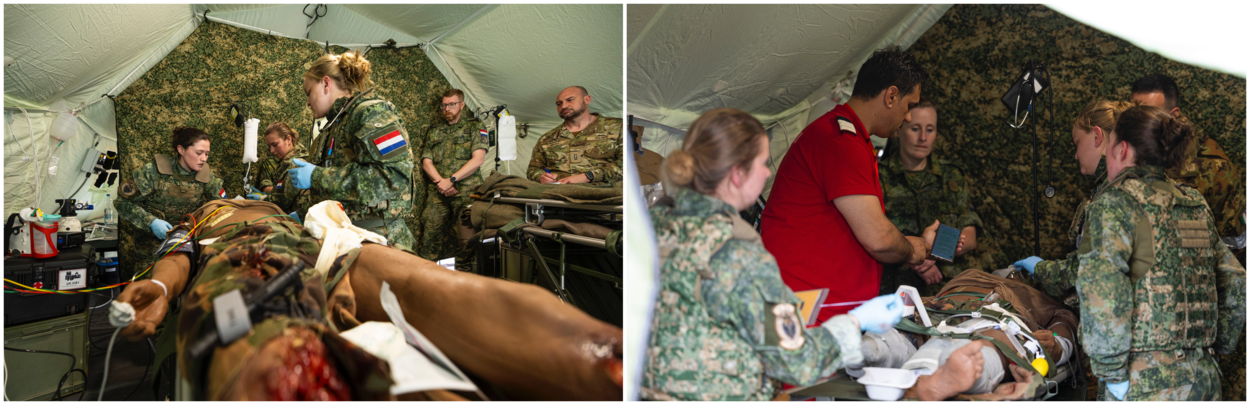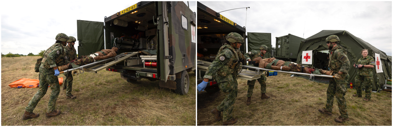 Op het oefenterrein staan diverse Rollen 1 opgesteld, dus slachtoffers worden verdeeld. Daarna volgt de Role 2 waar een patiënt een levensreddende operatie kan ondergaan. De Role 3 – vergelijkbaar met Role 2, maar groter en met meer specialismen – is er tijdens deze oefening niet. Vanuit de Role3 worden patiënten normaliter gerepatrieerd naar een Role 4, die altijd buiten het conflictgebied ligt. Meestal is dat het land van herkomst.