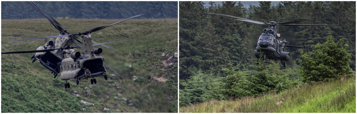 Kapitein Hamwab, sinds 2017 vlieger op de Cougar, is al voor de derde keer op deze oefening. “Laagvliegen kan je in Nederland ook, maar hier kan je érg laag”, geeft hij aan. “En dat betekent jouw veiligheid als helikopterbemanning. Die hebben we nodig, want Hoofdtaak 1-operaties waarvoor we nu trainen en oefenen, zijn compleet anders dan situaties zoals in Afghanistan en Mali. Daar had je alleen dreiging van kleinkaliberwapens. Die zijn zeker niet ongevaarlijk; dat weten wij als helikopterbemanningen maar al te goed. Maar de wapens gekoppeld aan radars en infraroodzoekers, zijn letterlijk van een heel ander kaliber.”