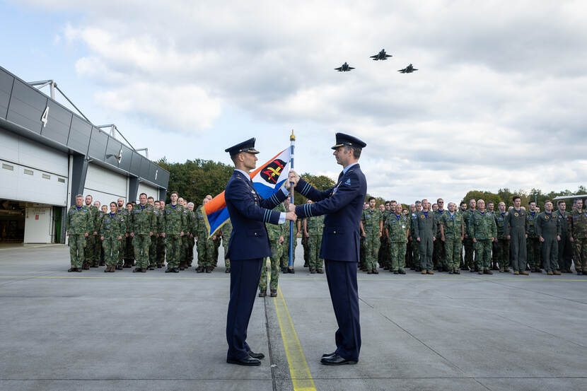 Het 312 squadron heeft sinds 3 oktober een nieuwe commandant. Luitenant-kolonel Patrick ‘Naish’ Vreeburg droeg het commando van het 312 squadron over aan luitenant-kolonel Bram ‘B’ Versteeg. Foto: sergeant Gregory Fréni