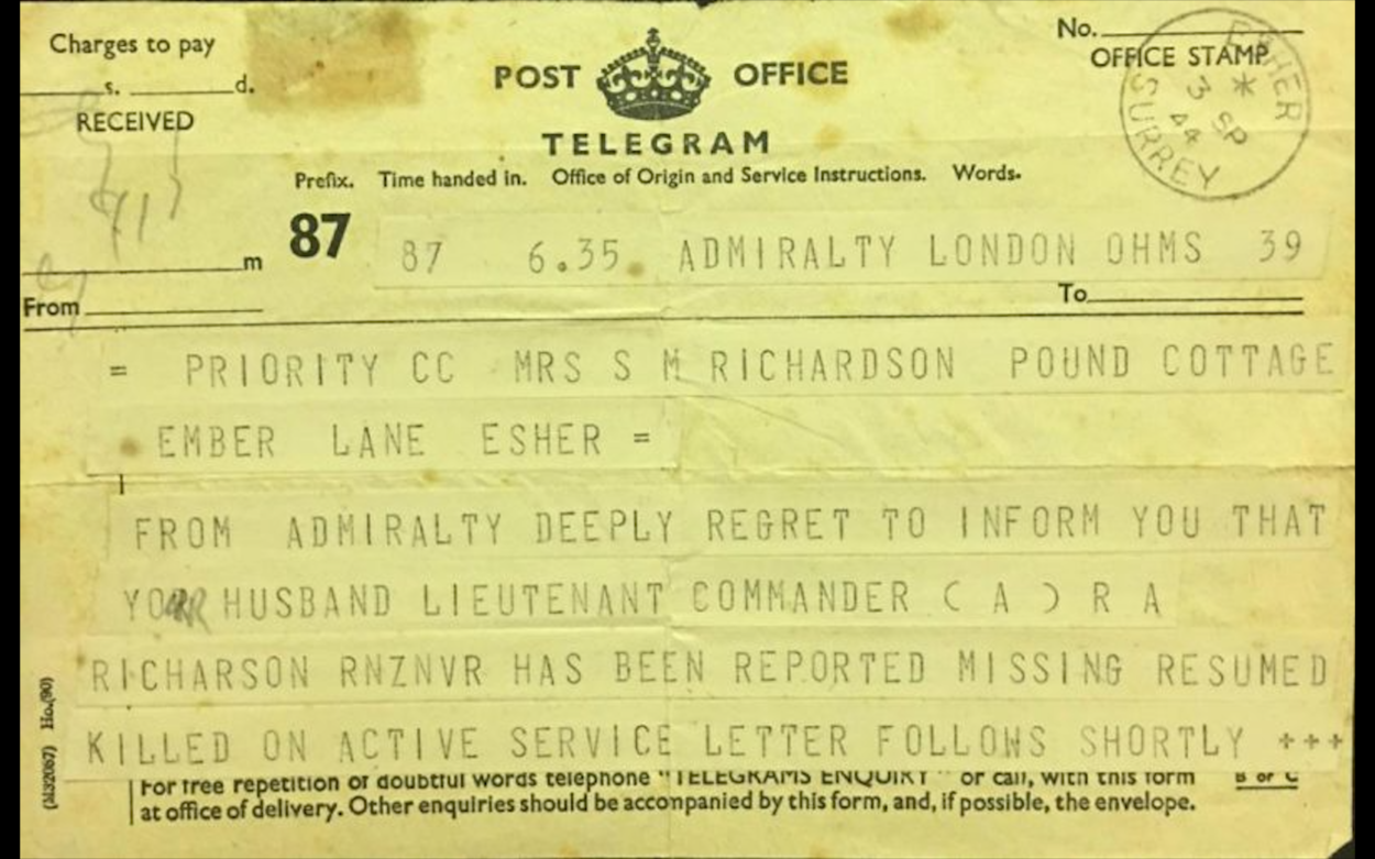 Het zeer zorgvuldig bijgehouden dagboek van Boon von Ochssée spreekt ook daarna regelmatig over gesneuvelde collega’s van 1840 NAS, maar ook van de komst van Ron Richardson: ‘The new boss has arrived’. Nergens is het echter met zo’n warme en emotionele pen geschreven als bij de crash van Richardson. Hij krijgt een voltreffer tijdens een duikvlucht om een bom af te werpen op de Tirpitz en verdwijnt in een rookgordijn. Koude rillingen.