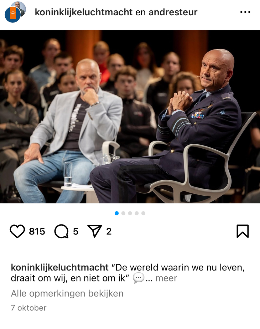 ‘De wereld waarin we nu leven, draait om wij, en niet om ik.’ Dat is een van de pakkende uitspraken van C-LSK luitenant-generaal André Steur tijdens een masterclass voor een zaal vol studenten en andere belangstellenden. Meer zien en lezen? Klik dan op deze link: