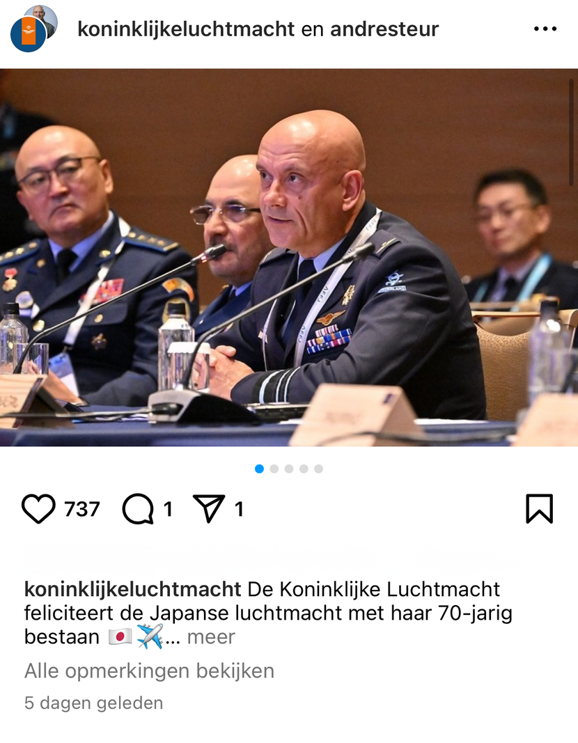 Commandant Luchtstrijdkrachten André Steur bezocht Japanse voor onder meer het 70-jarig bestaan van de Japanse Luchtmacht. Hij sprak daar ook met luchtmachtcommandanten uit verschillende landen. Meer zien en lezen? Klik dan op deze link: