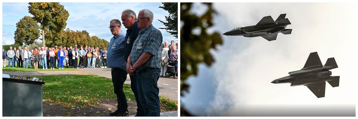 Drie initiatiefnemers Bert Schieven, Gerrie Evers en Jan Wolsink zetten zich al snel na de berging in voor een monument voor de zes gesneuvelde bemanningsleden. Dat werd uiteindelijk afgelopen 23 september onthuld langs de Hummeloseweg in Zelhem. Na contact van Peter Rhebergen met Commandant Air Combat Command commodore Marcel van Egmond, lukte het om tijdens de onthulling een flyby uit te laten voeren met twee F-35’s. Foto’s: Jan Wolsink