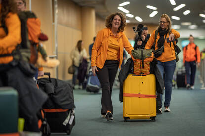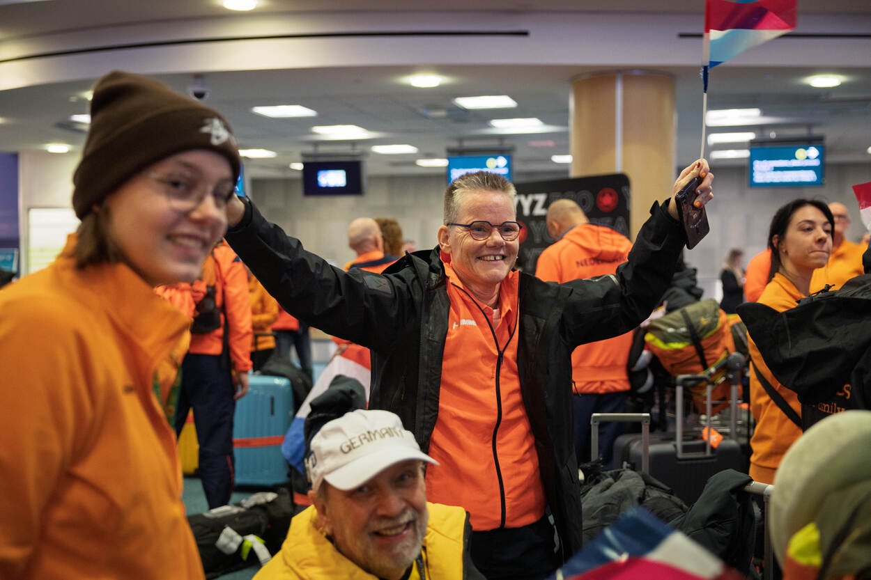 Het is een feestelijk gezicht, donderdag 6 februari in de aankomsthal van Vancouver International Airport. Teams uit alle hoeken van de wereld zijn naar Canada gekomen en worden met muziek en enthousiast gevlag ontvangen. Waar het Israëlische team onder de luide klanken van Hava Nagila welkom wordt geheten en de Duitsers door muziek van Rammstein en Helene Fischer, kondigt de Nederlandse entree zich aan met Snollebollekes en André Hazes. Ondanks de lange vlucht van ruim negen uur, komt het oranje-team feestend en zwaaiend de terminal uit. De achttien (oud-)militairen zijn uitgelaten en blij dat hun avontuur eindelijk van start gaat.