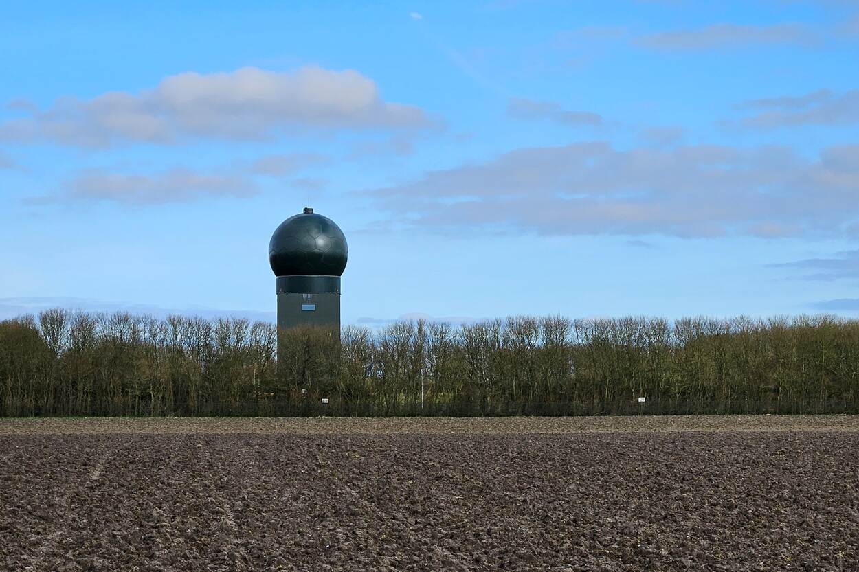 Het radarstation in Wier, op de voorgrond akkerbouw.
