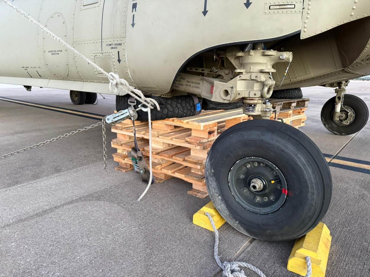 Twee vliegtuigplaatwerkers, een vliegtuigmonteur, een schilder, een werkvoorbereider en een coördinator van Bureau Productie Engineering 980 Squadron vlogen als zogeheten ‘repair party’ naar 302 Squadron op het Texaanse Fort Cavazos. “De ophangpunten waaraan de poten van het landingsgestel normaliter vastzitten, moesten worden vervangen”, vertelt coördinator eerste-luitenant Bart Schlössels. “Het was op voorhand nog niet duidelijk wat we precies weg moesten halen en wat kon blijven zitten, omdat deze reparatie nog nooit was uitgevoerd. Dat maakte het ingewikkeld, maar zeker ook uniek.” De optie om een Amerikaans onderhoudsbedrijf in te schakelen was overigens géén optie; die had pas in 2026 tijd.