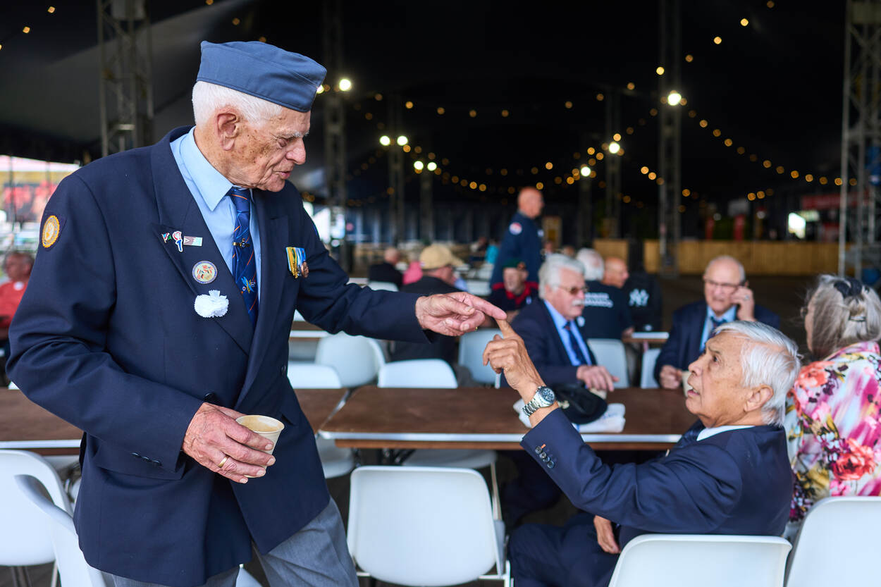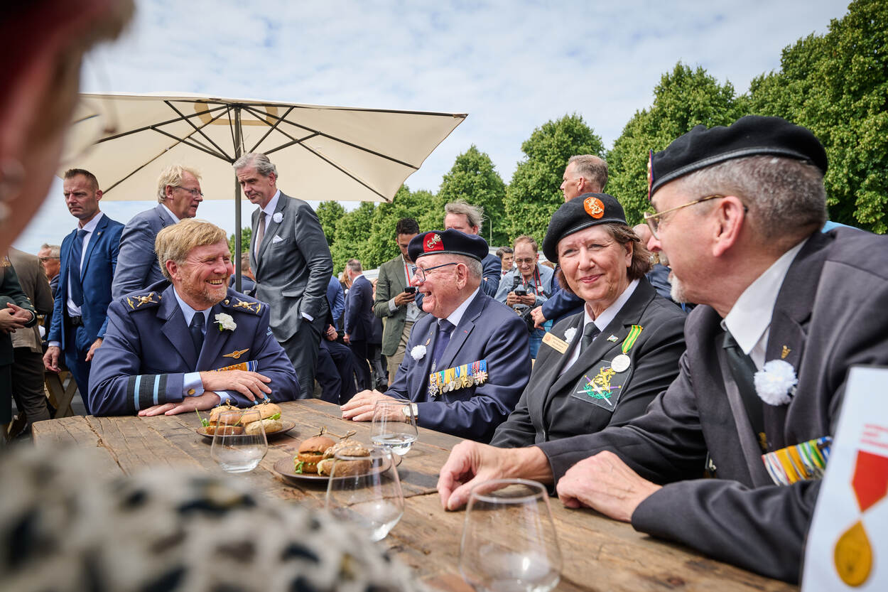 Het Malieveld is elk jaar de plek waar veteranen samenkomen. Bijpraten met collega’s van vroeger, eten en drinken, dansen op muziek van (onder meer) het Orkest Koninklijke Luchtmacht, even kletsen met demissionair minister van Defensie Ruben Brekelmans of zelfs met koning Willem-Alexander of met hem op de foto gaan. Daarnaast is er een spectaculaire parachutesprong, kunnen de bezoekers in de wereld van missies duiken, vliegen in een F-16-simulator of zitten in een militair voertuig of een Alouette III die tot en met 2015 dienst deed bij de luchtmacht.