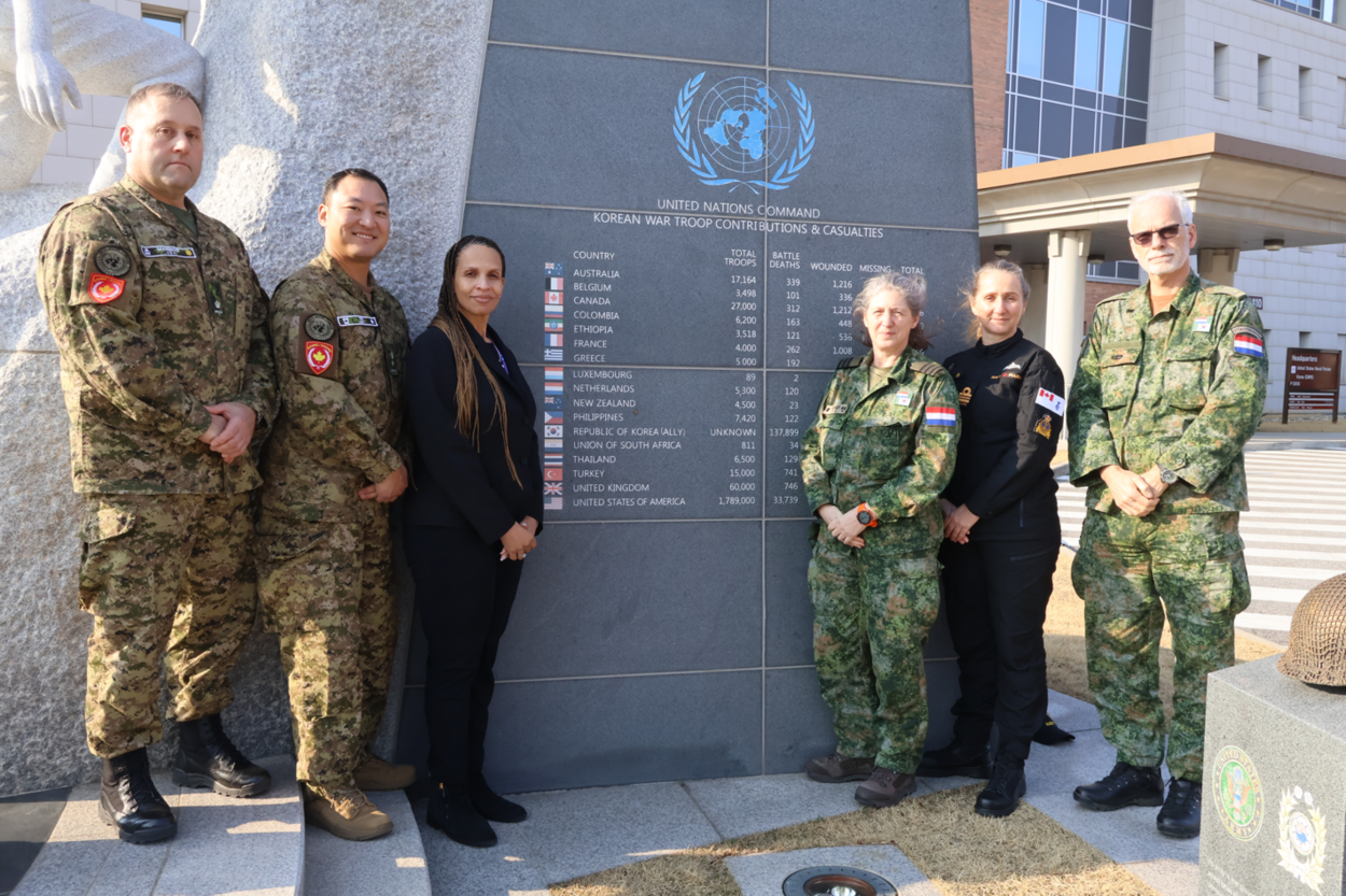 Met drie militairen neemt Nederland sinds 5 januari 2025 deel aan de United Nations Command (UNC) in de Republiek Korea (Zuid-Korea). Naast een genderadviseur heeft Nederland gedurende twee jaar een officier strategische communicatie en een onderofficier movement control in het gebied. De drie specialisten worden tussendoor afgewisseld.