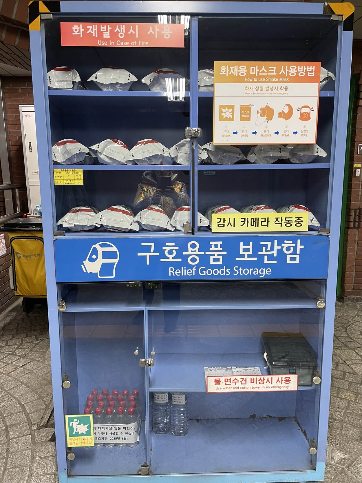Voor het geval Zuid-Korea overvallen wordt door een chemische aanval staan er in de metrostations vaak meerdere kasten met gasmaskers. Hoe deze te gebruiken, wordt op beeldschermen in de metro’s getoond. Tussendoor zie je ‘gewone’ reclamefilmpjes over botox. “Een surrealistische gewaarwording”, vindt Burger.