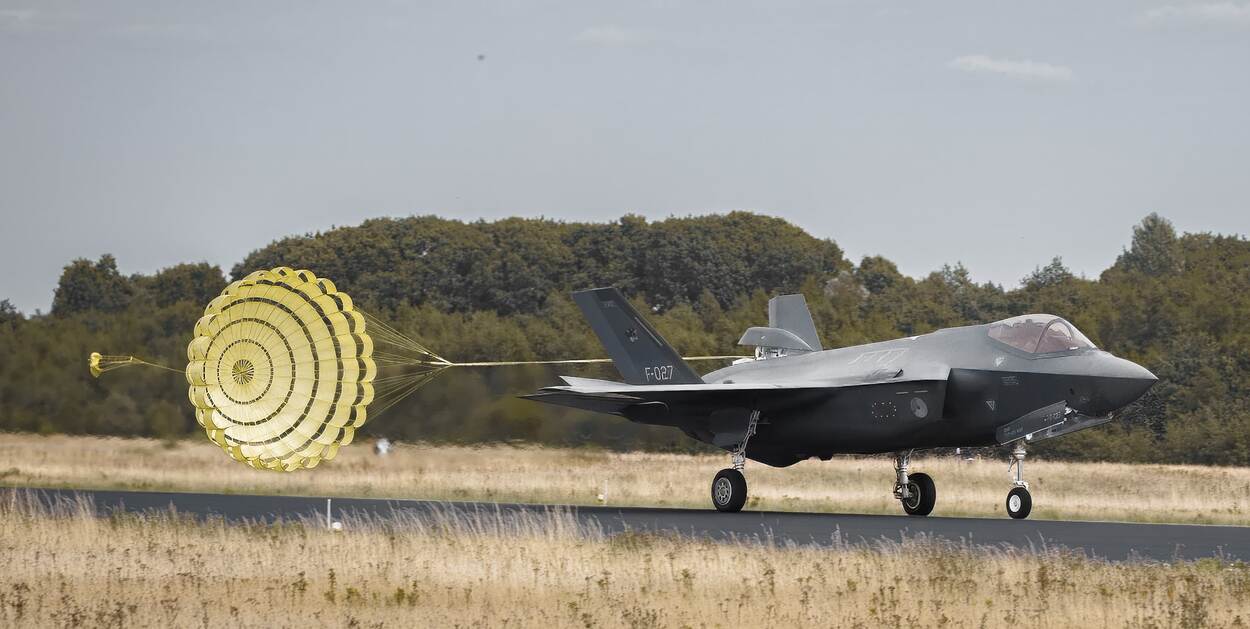 Eerste dragchute-landing F-35 op Volkel