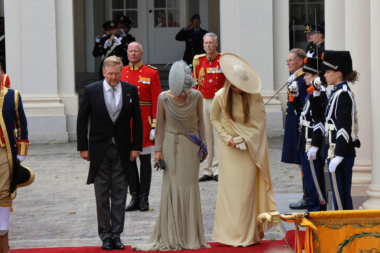 Dat de militairen uitgebreid stilstaan bij dit onderdeel, is niet zonder reden. Het vaandel is namelijk het enige onderdeel van het met ceremonieel overladen Prinsjesdag dat de koning beantwoordt. Met een knikje welteverstaan. De vier vaandelwachten hebben zowel tijdens het intreden als daarna dan ook een belangrijke taak. Niet alleen vormen vaandels een symbool van onderlinge verbondenheid tussen de militairen van een onderdeel, ze zijn ook het uiterlijke teken van de band tussen een eenheid en het Koninklijk Huis. ‘Vaandelwacht, zet af, geweer’, klinkt het even later bij het zestienmetergebied. Het is een van de laatste hoorbare commando’s. Na zo’n anderhalf uur trainen zijn de puntjes op de i gezet. Vijf dagen later betaalt dat zich uit.