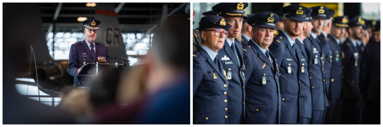 Dat sluit aan bij de woorden van Adang: “Trouw aan elkaar is geen abstract begrip. Het is zichtbaar in deze zaal, voelbaar in onze luchtmachtfamilie en tastbaar in de manier waarop u vandaag de moeite neemt om hier te zijn, om herinneringen te delen, en om naar elkaar om te kijken.”