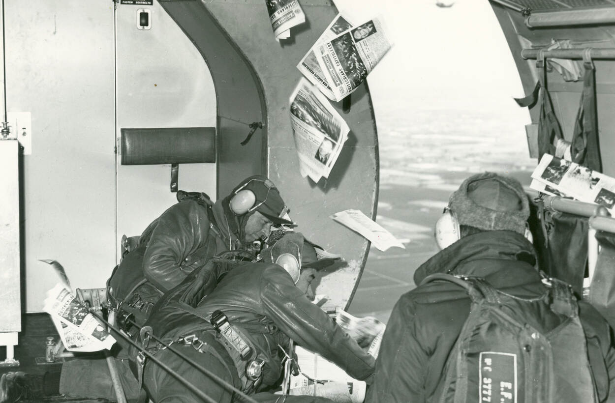 Daarom zoekt de Nederlandse regering in Londen naar een ander middel om Nederland van informatie te voorzien. Dat is snel gevonden in de vorm van strooibiljetten – ook wel vlugschriften genoemd – die boven bezet gebied worden uitgeworpen. Niet de eerste, maar wel de bekendste Nederlandse titel daarvan is ‘De Vliegende Hollander’. Om het te lezen hoeven Nederlanders niets anders te doen dan het pamflet oprapen. Dat is overigens evenzo gevaarlijk als radioluisteren wanneer de Duitsers je betrappen. Maar met een week- en later zelfs dagblad krijgt de Nederlandse bevolking vanuit Engeland op min of meer dezelfde manier ‘nieuws’ als voor de oorlog. Al is dat met de nodige beperkingen.